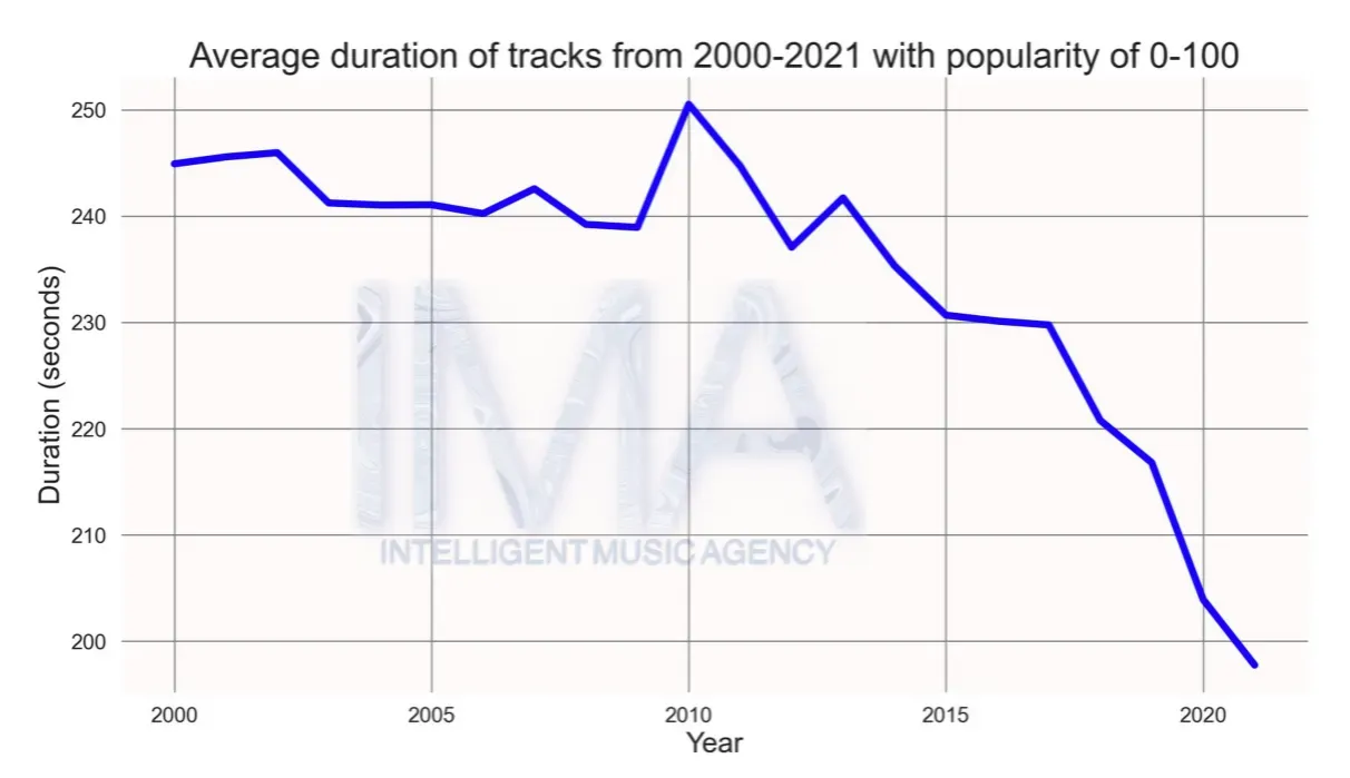 Got me thinking, this might be the effect of music producers optimising for streams instead of just optimising for music quality.